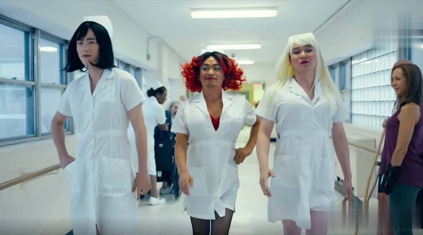 比如他们在医院扮女装,唐仁涂着大红唇、穿高跟鞋走路扭扭捏捏的,秦风憋笑的表情都快绷不住了,电影院里的笑声能掀翻屋顶。